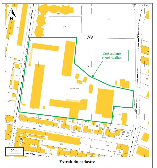 | Description | La Cité scolaire Henri Wallon à Aubervilliers regroupe un collège et un lycée général et technologique, et occupe une partie de la parcelle cadastrale AV 97. L’État a engagé une démarche de diagnostics des sols dans les établissements accueillant des enfants ou adolescents, construits sur ou à proximité d'anciens sites industriels. Dans ce cadre, les investigations réalisées en 2016 dans la cité scolaire Henri Wallon ont révélé : - la présence de composés volatils dans l’air du sol sous les dalles du bâtiment ; les aménagements et les usages actuels permettent de protéger les personnes de l’exposition à cette pollution ; le maintien en bon état des dalles et vides sanitaires est cependant recommandé ; - la présence de plomb dans les sols superficiels à des teneurs supérieures à la valeur de référence définie par le Haut Conseil de la Santé Publique (HCSP) pour ce composé ; Des mesures de gestion ont été recommandées au maître d’ouvrage. Sous réserve du respect de ces recommandations, le site est compatible avec son usage actuel. |
