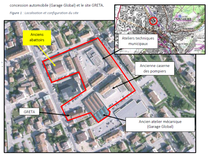 | Description | - début du 20ème siècle : accueil de différentes activités industrielles ou artisanales (abattoirs, caserne de pompiers, garage global, usine mécanique, station-service, fonderie, ateliers techniques municipaux) 2017 : diagnostic de la qualité des milieux sur l’emprise foncière du projet Ilot Saint-Pierre à Pontarlier (PERL ENVIRONNEMENT RAPPORT N° R21-17006-V1 du 11/09/2017) et plan de gestion sur l’emprise foncière de l’Ilot Saint-Pierre à Pontarlier (PERL ENVIRONNEMENT rapport n°R21-17006c-V1 du 17/10/2017). 19 décembre 2018 : notification de l’arrêt définitif du dépôt de chlore sur l’ancien centre technique municipal (parcelle AY 156) 9 janvier 2019 : notification de l’arrêt définitif de la station service sur l’ancien centre technique municipal (parcelle AY 156) 2019 : Arrêté préfectoral tiers demandeur n°25-2019-09-30-007 du 30 septembre 2019 pour la société Territoire 25 2019 : travaux de réhabilitation 2020 : Rapport de fin de travaux R21-17093-V1 du 6 janvier 2020 transmis par Territoire 25 2021 : Procès-Verbal de récolement des travaux – rapport de l’inspection des installations classées du 19 octobre 2021 |